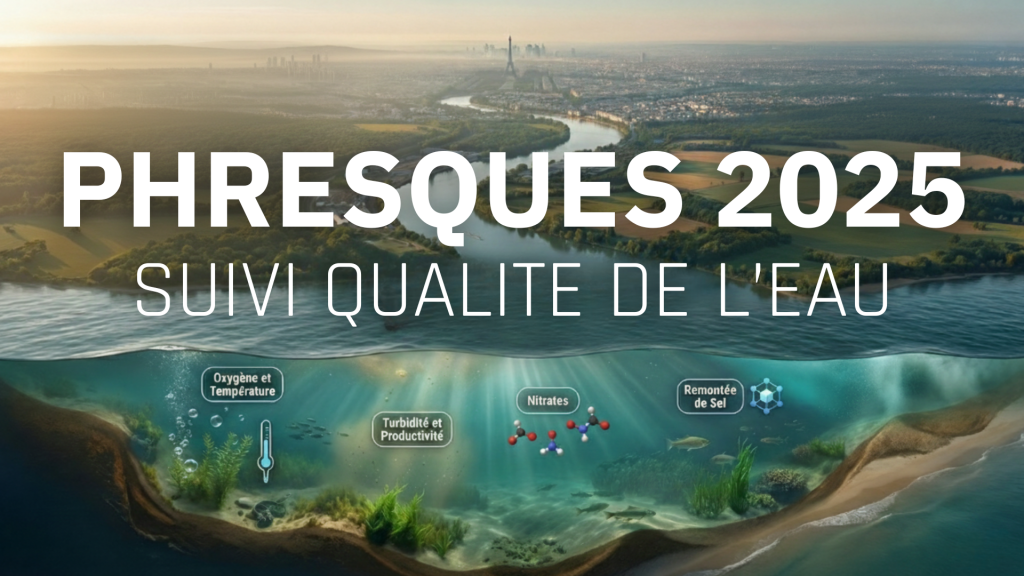 A l’occasion de la fin de la phase 2 du projet PHRESQUES, le GIP Seine-Aval a organisé un séminaire sur le suivi haute-fréquence de la qualité de l’eau de la Seine, de Paris à la mer. Cette journée du 11 juin 2025 a été l’occasion de réunir la communauté scientifique et technique active pour le suivi haute-fréquence des milieux aquatiques autour des objectifs suivants :